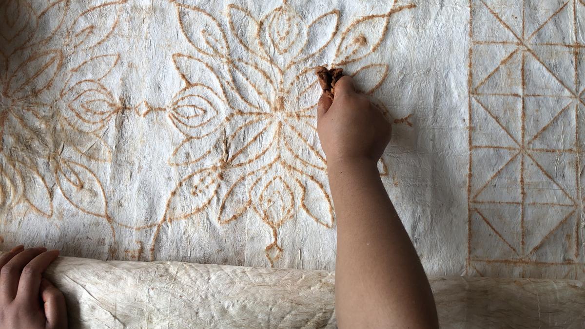 Members of the family, in partnership with IVI designs, offer an open and interactive learning space where participants can gather to learn from each other through the creation of smaller works on bark cloth.