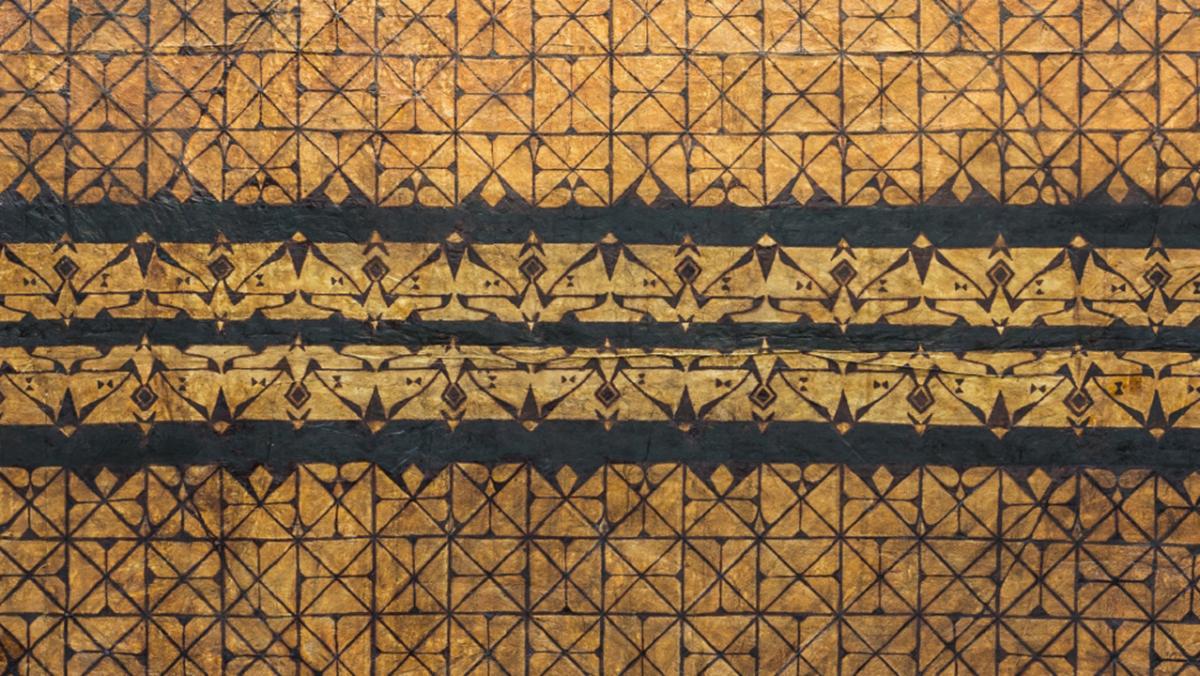Image: Ruha Fifita, 'Lototō 1' 2016 (detail). Earth pigments, natural dyes and tuitui (Candlenut soot) on ngatu (barkcloth). Image courtesy: the artist. Photograph: Arnaud Elissalde