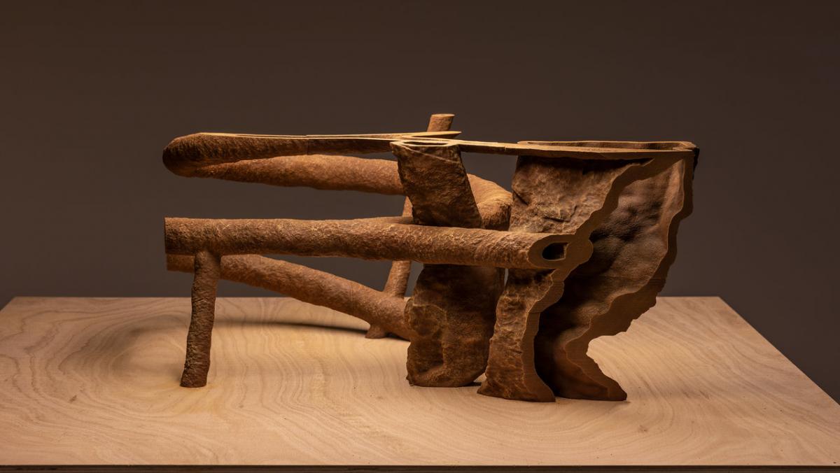 Image: Nicholas Mangan, Termite Economies (detail), 2018. 3D printed plaster, dirt, synthetic polymer paint, plywood, painted mild steel, fluorescent bay light, archival and recorded footage, monitors, four-channel surround sound of termite warning signals. Michael Buxton Collection, Melbourne. Courtesy: the artist and Sutton Gallery, Melbourne. Image: Andrew Curtis.