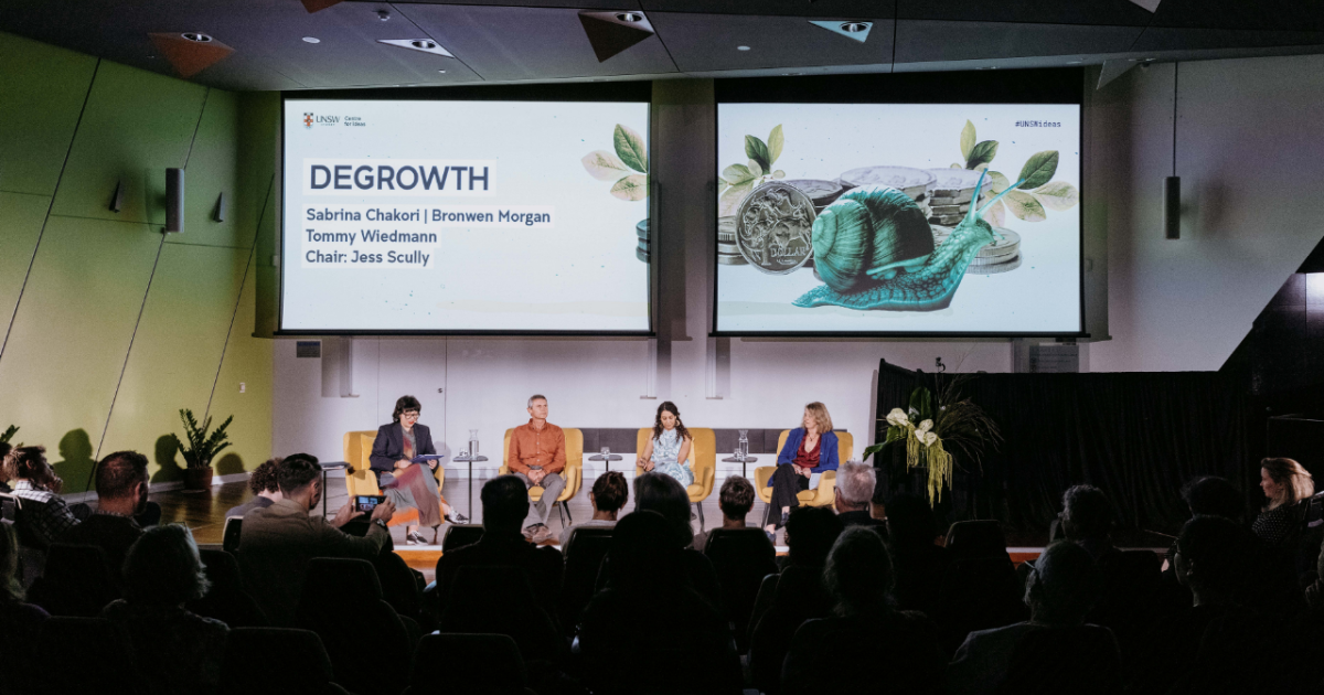 Listen to UNSW’s sustainability scientist Tommy Wiedmann and Professor of Law Bronwen Morgan, CSIRO researcher Sabrina Chakori, and former Deputy Lord Mayor and author of Glimpses of Utopia Jess Scully as host, discuss sustainability and the urgent challenge we face to create a world which ensures human needs are met without sacrificing a sustainable, inclusive future.