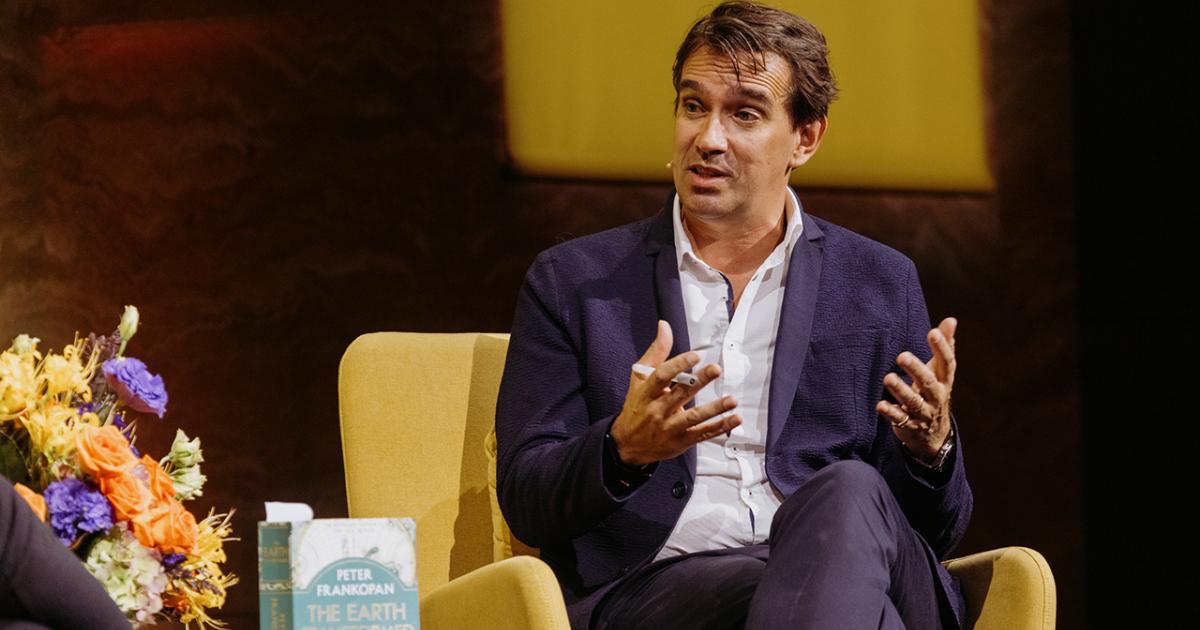 It turns out that this is a history of atmospheres, hydrospheres, lithosphere is biospheres, their impact on us as humans, and especially our impact on them. It's with great pleasure that I ask you to join me to welcome Peter Frankopan to deliver the 2024 Gandhi Oration.