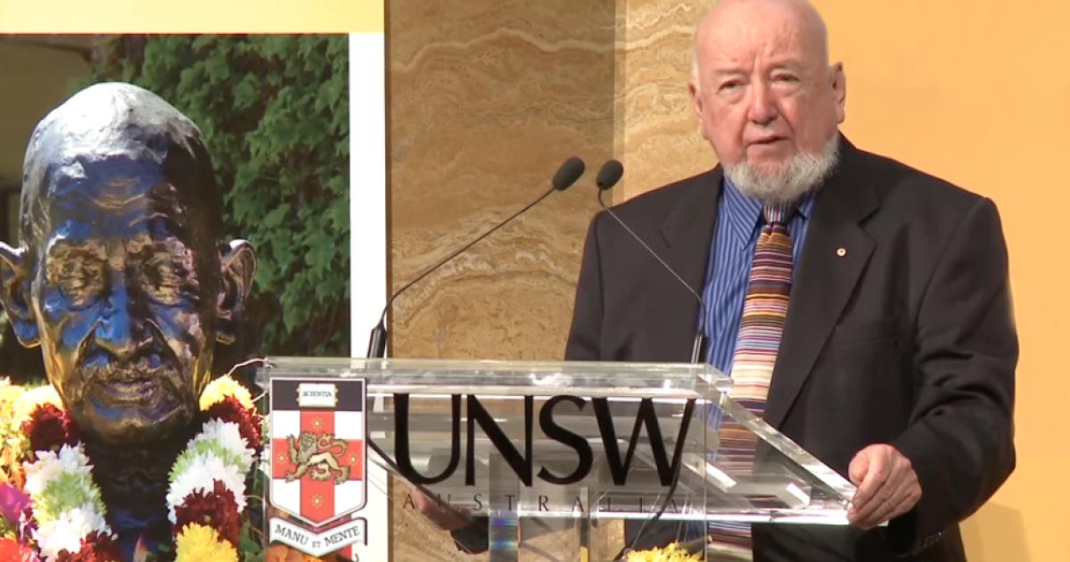 Booker prize-winning author Tom Keneally challenges Australia's policy on asylum seekers in his delivery of the 2014 Gandhi Oration at UNSW. Keneally delivered the Oration to a capacity audience at UNSW's Leighton Hall to mark India's Martyr's Day, the anniversary of Mahatma Gandhi's assassination in 1948. The public talk was preceded by a remembrance ceremony at the Gandhi bust on the UNSW Library Lawn.