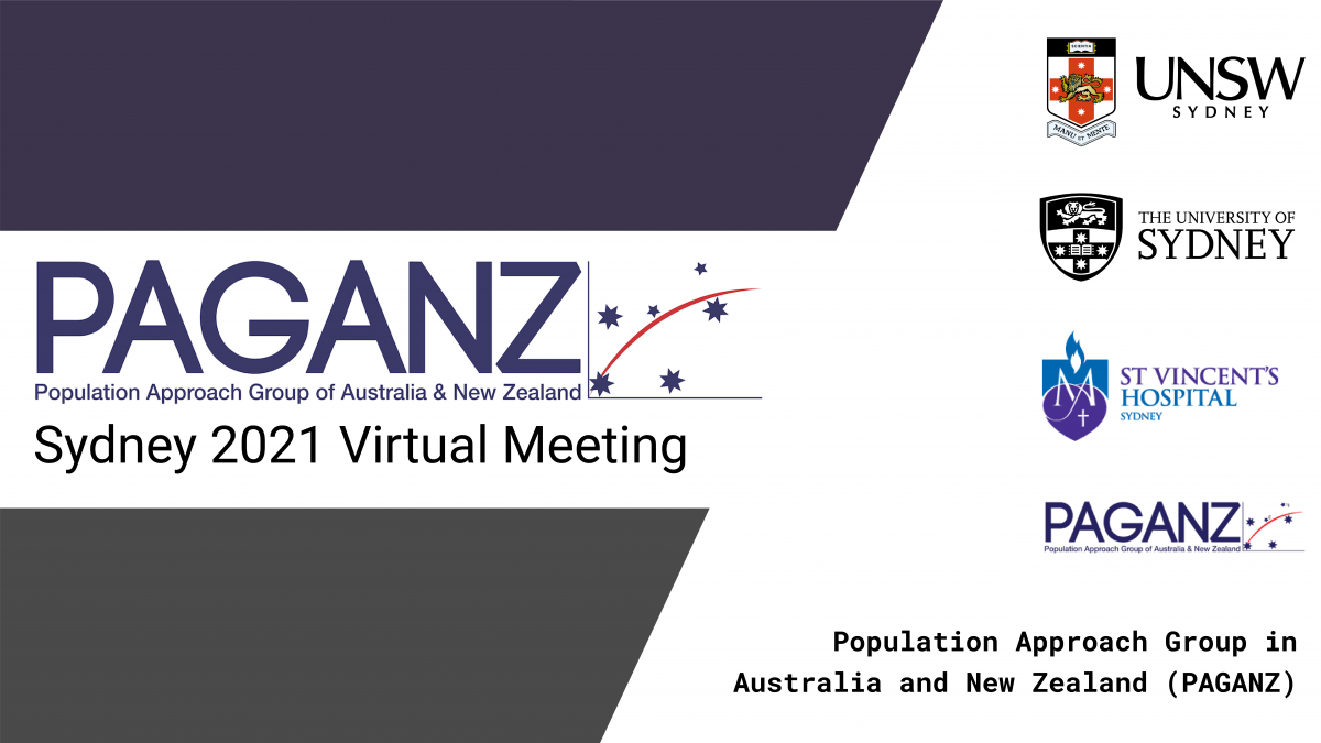 The annual Population Approach Group in Australia and New Zealand (PAGANZ) meeting will be the first virtual PAGANZ meeting hosted in Sydney, Australia by the school of Pharmacy, University of Sydney; St Vincent’s Hospital, Sydney and St Vincent’s Clinical School, UNSW from Wednesday 27th January to Friday 29th January 2021.